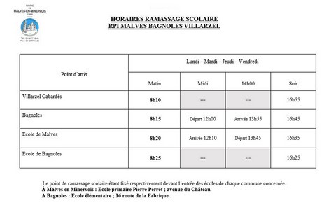 - L'école primaire Pierre Perret de Malves-en-Minervois avec 2 classes maternelles (PS, MS, GS) et 2 classes élémentaires (CP, CE1,CE2)